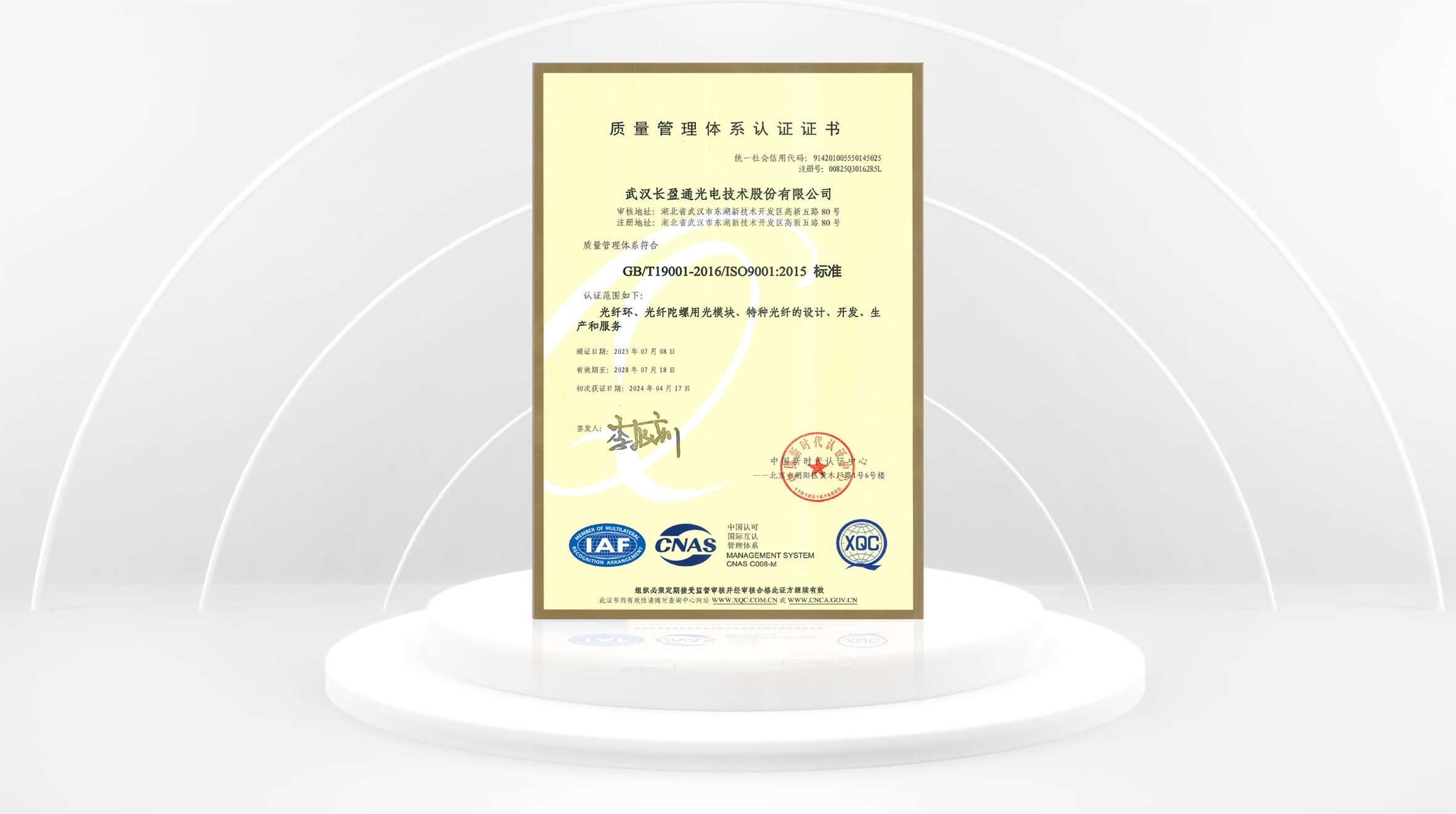 公司自2011年建立并运行基于GB/T 19001-2008 idt ISO 9001:2008标准的质量管理体系,并于同年通过了GB/T 19001-2008 idt ISO 9001:2008质量管理体系认证。2018年顺利通过了GB/T 19001-2016 idt ISO 9001:2015质量管理体系换版认证,并得到持续贯彻和保持。2017年,公司导入卓越绩效管理模式,进一步提升全面质量管理工作。2020年12月,公司荣获第三届“光谷质量奖-卓越奖”,标志着公司推行卓越绩效模式成效显著。