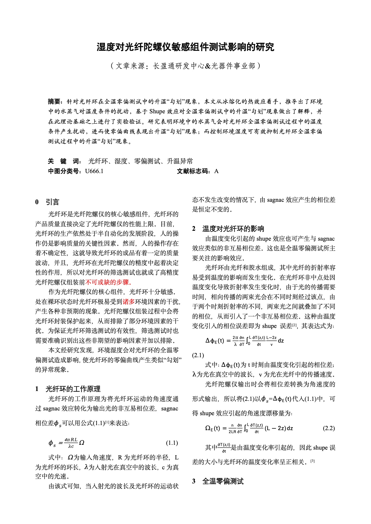 湿度对光纤陀螺仪敏感组件测试影响的研究