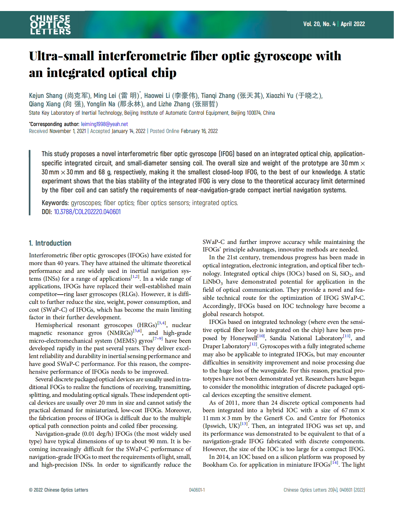 Ultra-small interferometric fiber optic gyroscope with an integrated optical chi